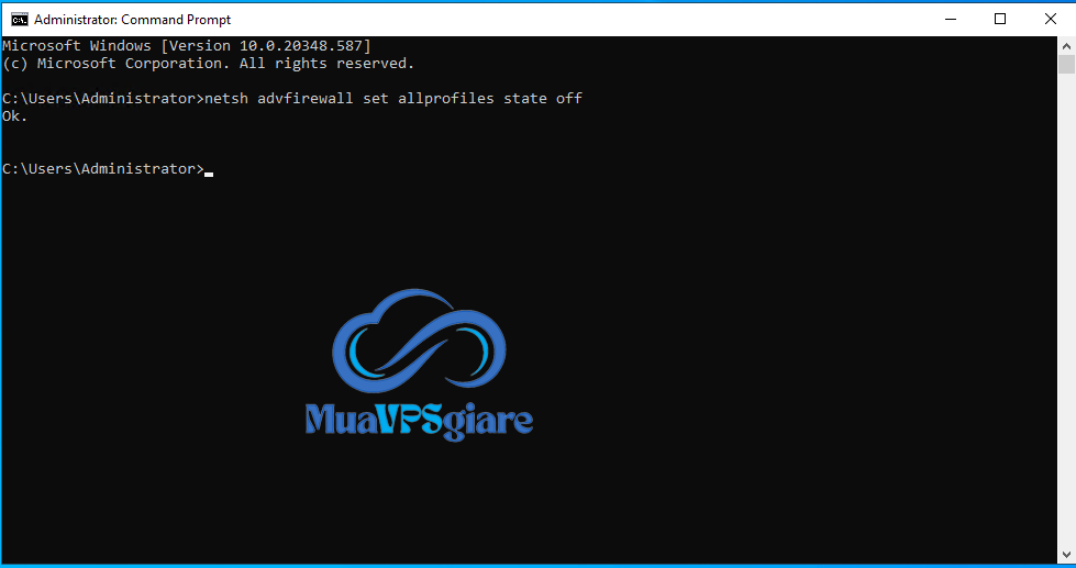 Sau khi đã mở Command Prompt với quyền Administrator, bạn nhập lệnh sau để tắt tường lửa cho tất cả các loại mạng (Domain, Private và Public):