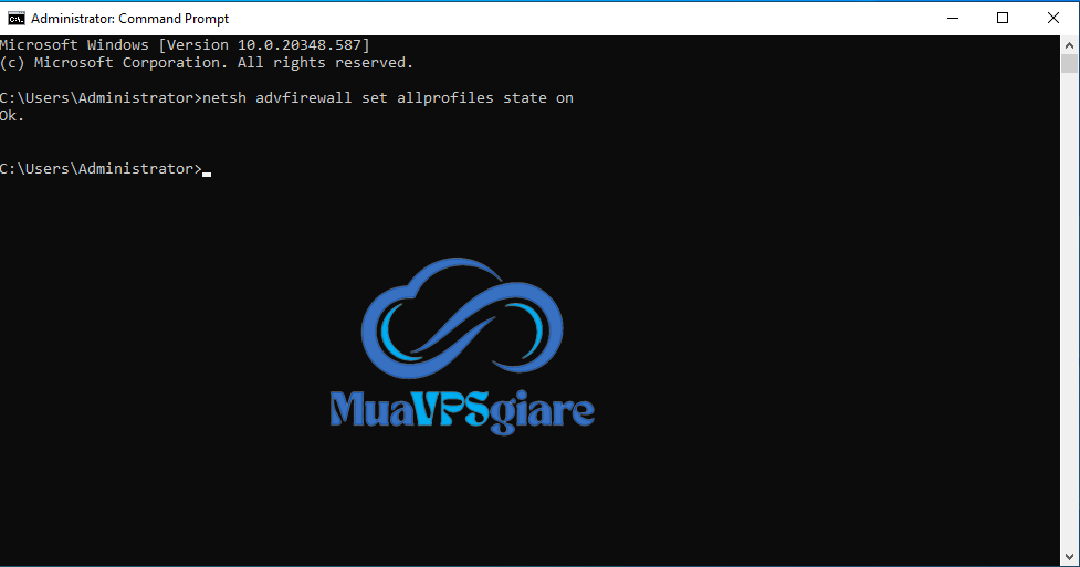 Khi đã hoàn tất công việc cần thiết, bạn nên bật lại Tường lửa ngay để đảm bảo an toàn cho hệ thống. Nhập lệnh sau vào Command Prompt (CMD) đang chạy với quyền Administrator: