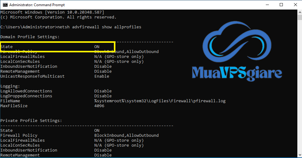 Bạn có thể kiểm tra xem Tường lửa trên Windows đang bật hay tắt bằng cách nhập lệnh sau trong Command Prompt (CMD):netsh advfirewall show allprofiles