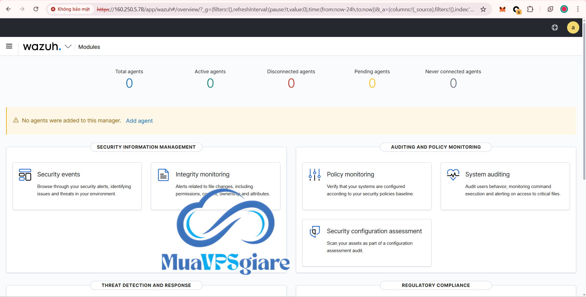 Bước 4: Truy cập giao diện Wazuh sau khi cài đặt hoàn tất, bạn có thể truy cập Wazuh thông qua giao diện Kibana bằng cách mở trình duyệt và nhập địa chỉ: