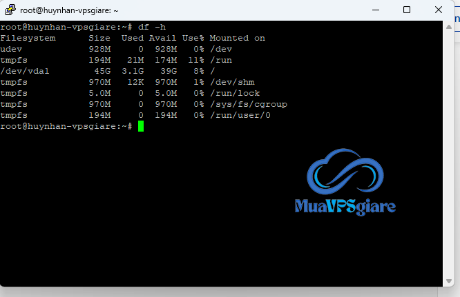Để kiểm tra dung lượng ổ đĩa, bạn có thể sử dụng lệnh df hoặc du. Các lệnh này giúp bạn biết được dung lượng đã sử dụng và còn trống trên VPS.