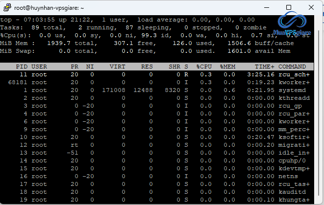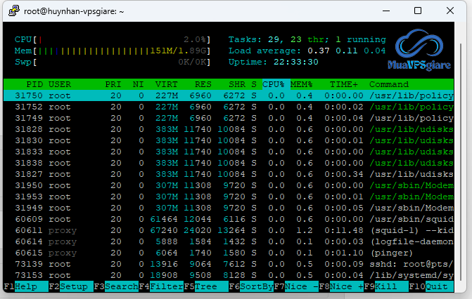 Lệnh htop (nếu đã cài đặt)