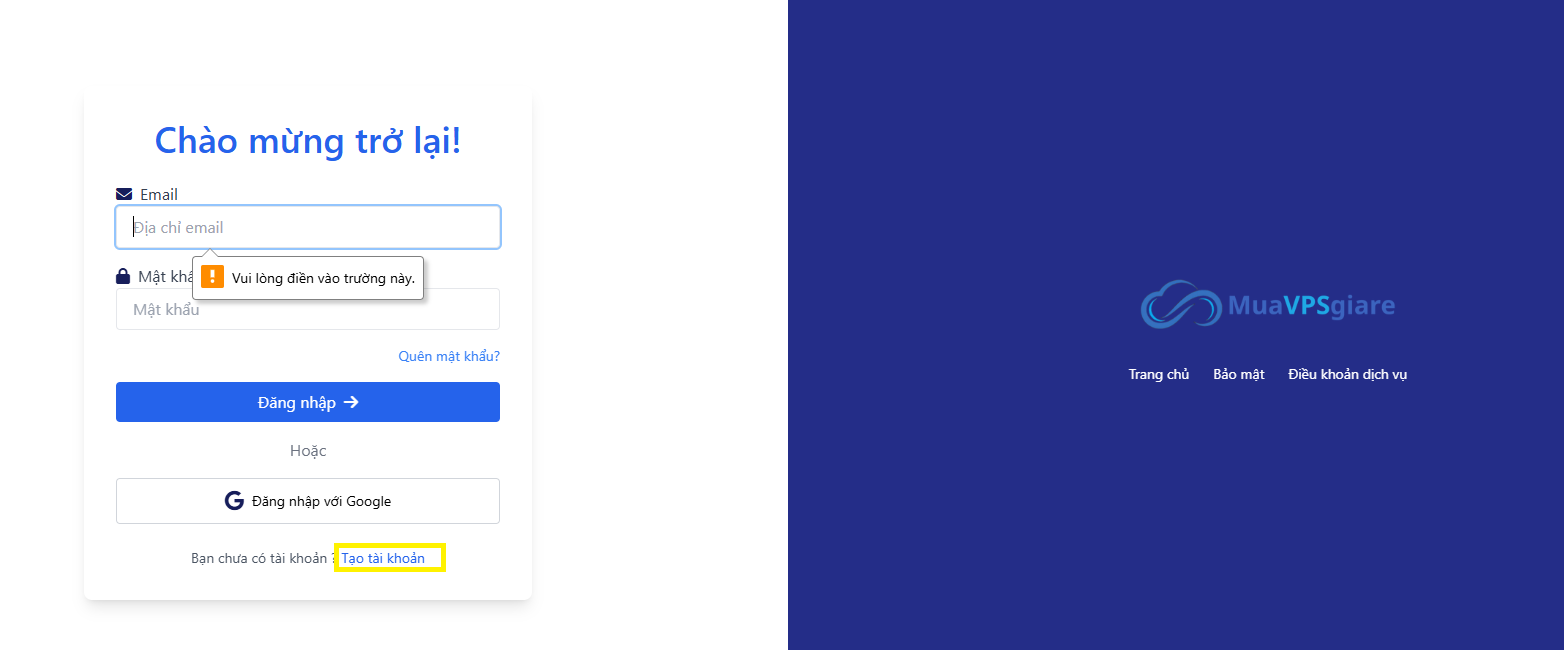 Truy cập  muavpsgiare.vn → Nhấn “Đăng Nhập ”