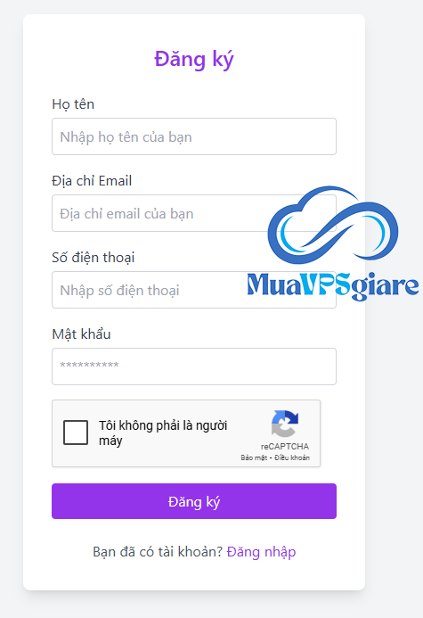 Bạn chỉ cần điền Họ tên, Email, Số điện thoại và Mật khẩu vào biểu mẫu, tích chọn ô “Tôi không phải là người máy”, sau đó nhấn “Đăng ký” để hoàn tất tạo tài khoản.